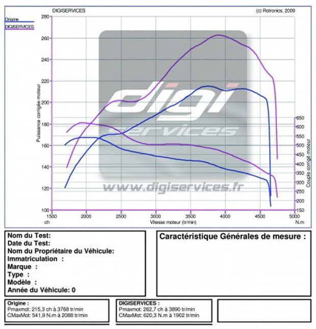 Stage 1 : optimisation de la puissance d’une BMW 530D E60 de 218 cv à 260 cv et augmentation du couple de 520 Nm à 620 Nm.